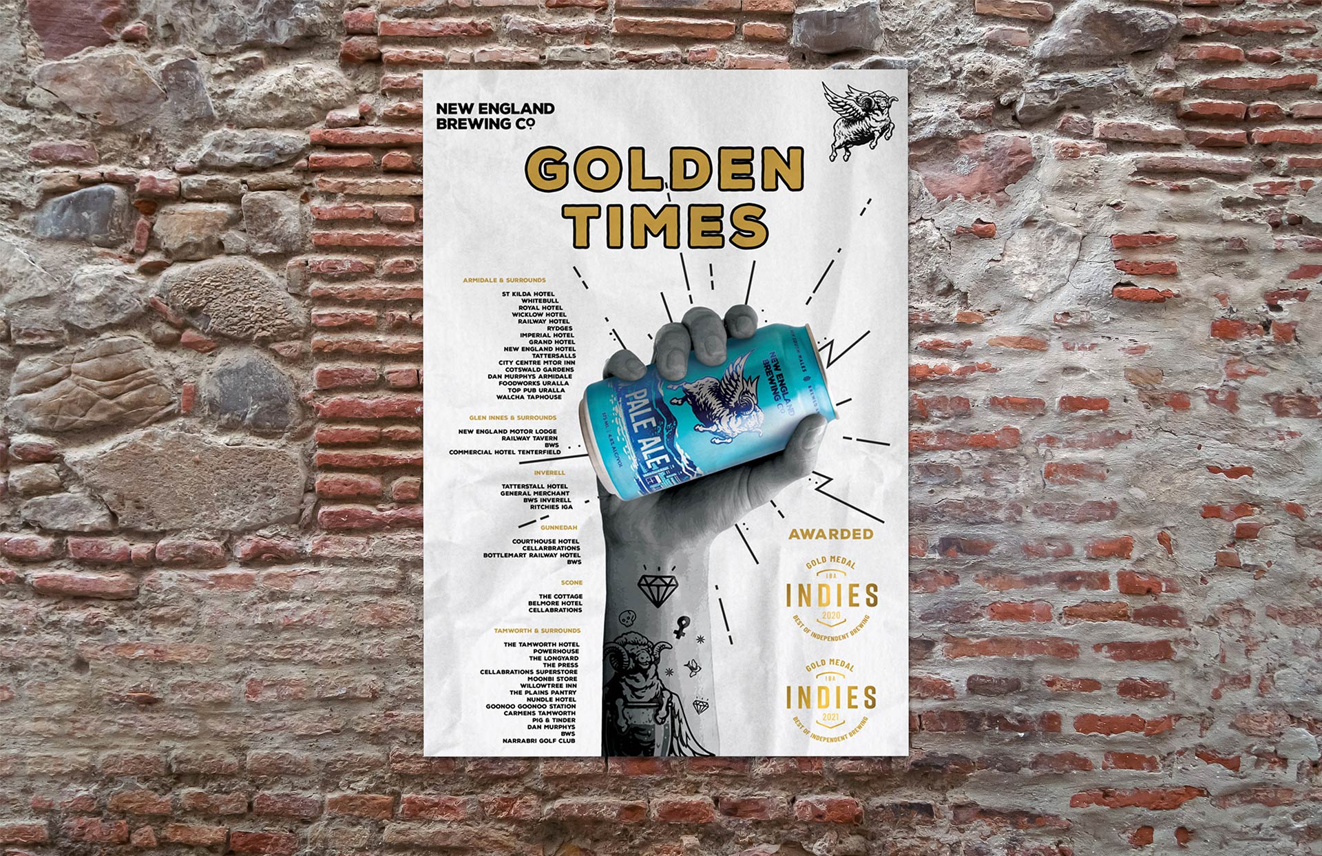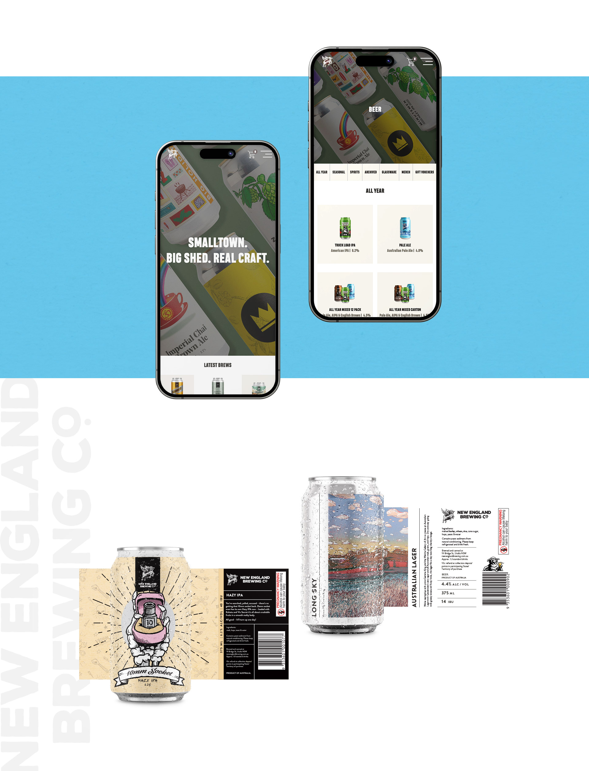 Based in Uralla, New England Brewing Co. is a small-town brewery with big flavour. Every batch is brewed and packaged by hand on their 20HL brewhouse, delivering fresh, honest beer that locals love and visitors hunt down. From traditional styles to bold, hoppy IPAs, their range has serious craft cred. Over the years, we’ve been lucky to help shape their brand across digital, print, and packaging — and it’s been one hell of a ride (best enjoyed with a cold one in hand).